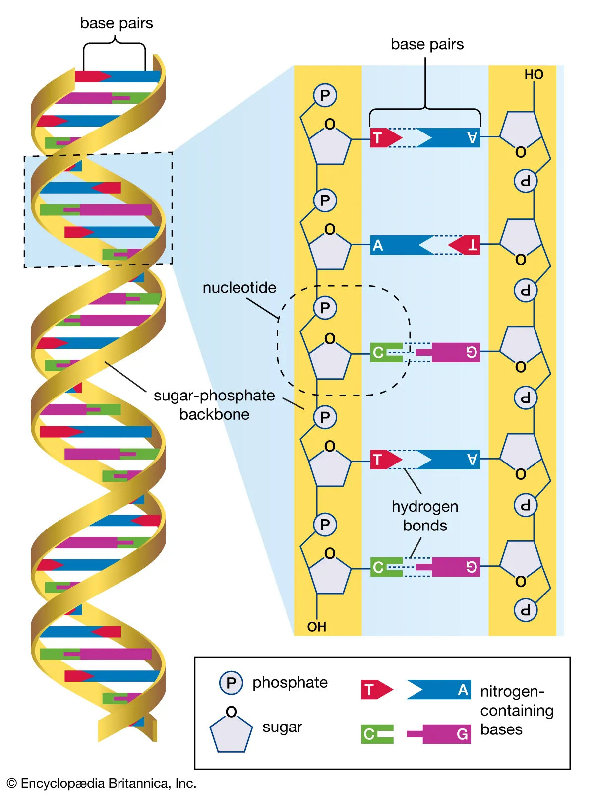 ডি এন এ বর্ণমালায় রয়েছে চারটি মাত্র অক্ষর ATGC। এই চারটি “অক্ষরের” বিন্যাসে এককোষী ব্যাকটেরিয়া সহ যাবতীয় উদ্ভিদ ও প্রাণীর সামগ্রিক ডি এন এ বা জিনোম গঠিত হয়েছে। জিনোমের আকার নির্ভর করে বেইসের সংখ্যার উপর। মানুষের জিনোমে প্রায় তিন বিলিয়ন বেইস পেয়ার (base pair) রয়েছে।