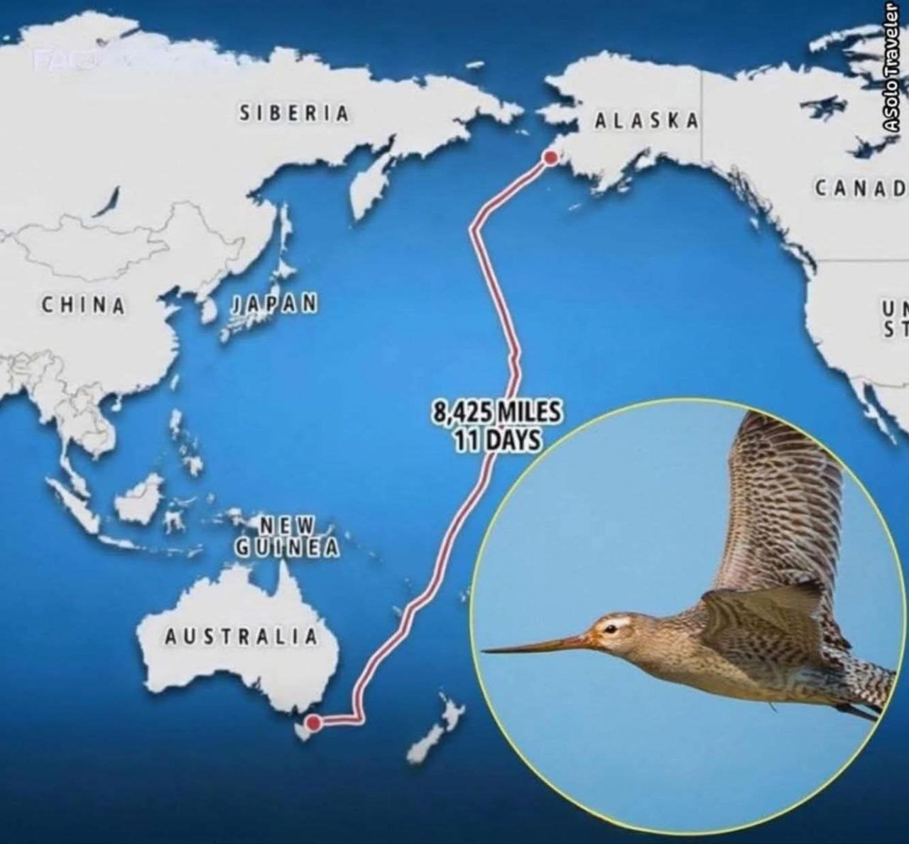 মাত্র পাঁচ মাস বয়সী একটি গডউইট পাখি উত্তর আমেরিকার আলাস্কা থেকে উড়ে এসে পৌঁছেছে অস্ট্রেলিয়ার দক্ষিণ-পূর্বে, তাসমানিয়া দ্বীপে। পাখিটির ট্র্যাকিং নম্বর ছিল ২৩৪৬৮৪, মাঝখানে কোথাও একবারও থামেনি পাখিটি। কোনো দ্বীপে নয়, কোনো জাহাজে নয়, একেবারে একটানা আকাশে উড়ে এসেছে।