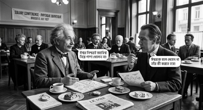 তাদের একজন হলেন আলবার্ট আইনস্টাইন, যিনি ততদিনে আপেক্ষিকতা তত্ত্ব দিয়ে দুনিয়া কাঁপিয়ে দিয়েছেন। আর অন্যজন হলেন ডেনমার্কের উজ্জ্বল নক্ষত্র, নীলস বোর। তাদের এই লড়াই কোনো সম্পত্তি বা ক্ষমতার জন্য ছিল না; এই লড়াই ছিল খোদ মহাবিশ্বের “চরিত্র” বা স্বরূপ নিয়ে।