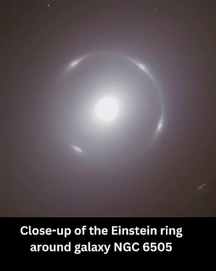 ইউরোপিয়ান স্পেস এজেন্সির (ESA) ইউক্লিড টেলিস্কোপ হঠাৎ করেই বিরল একটি ‘আইনস্টাইন রিং‘ খুঁজে পেয়েছে। এটি দেখা গেছে NGC 6505 গ্যালাক্সির চারপাশে । পৃথিবী থেকে এই গ্যালাক্সির দূরত্ব ৫৯০ মিলিয়ন আলোকবর্ষ। NGC 6505 গ্যালাক্সিটি আবিষ্কৃত হয়েছিল ঊনবিংশ শতাব্দীর শেষভাগে। কিন্তু এর আগে এই গ্যালাক্সির চারপাশে আইনস্টাইন রিংয়ের সন্ধান পাওয়া যায়নি।
