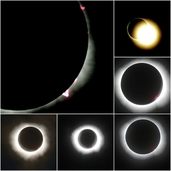 পূর্ণ সূর্যগ্রহণ প্রায় চার মিনিট স্থায়ী ছিল। এ সময় ক্যামেরার সোলার ফিল্টার খুলে নিয়ে বেশ কিছু ছবি তুললাম। চাঁদের বলয়ের পেছনে ছোট ছোট লাল রঙের সোলার প্রমিনেন্স দেখা যাচ্ছিল। ওগুলোর ক্লোজআপ ছবিও তুলতে পারলাম।